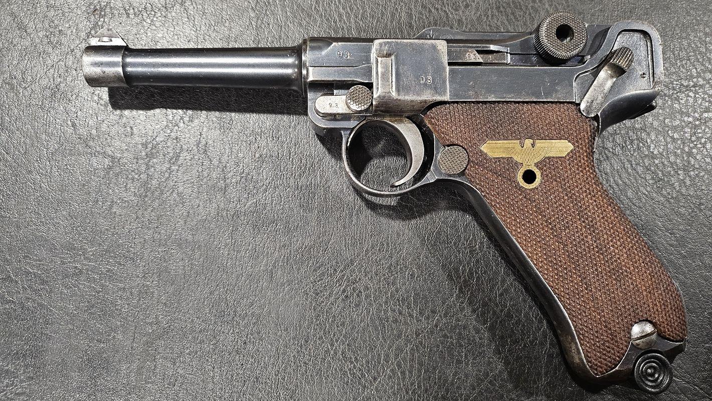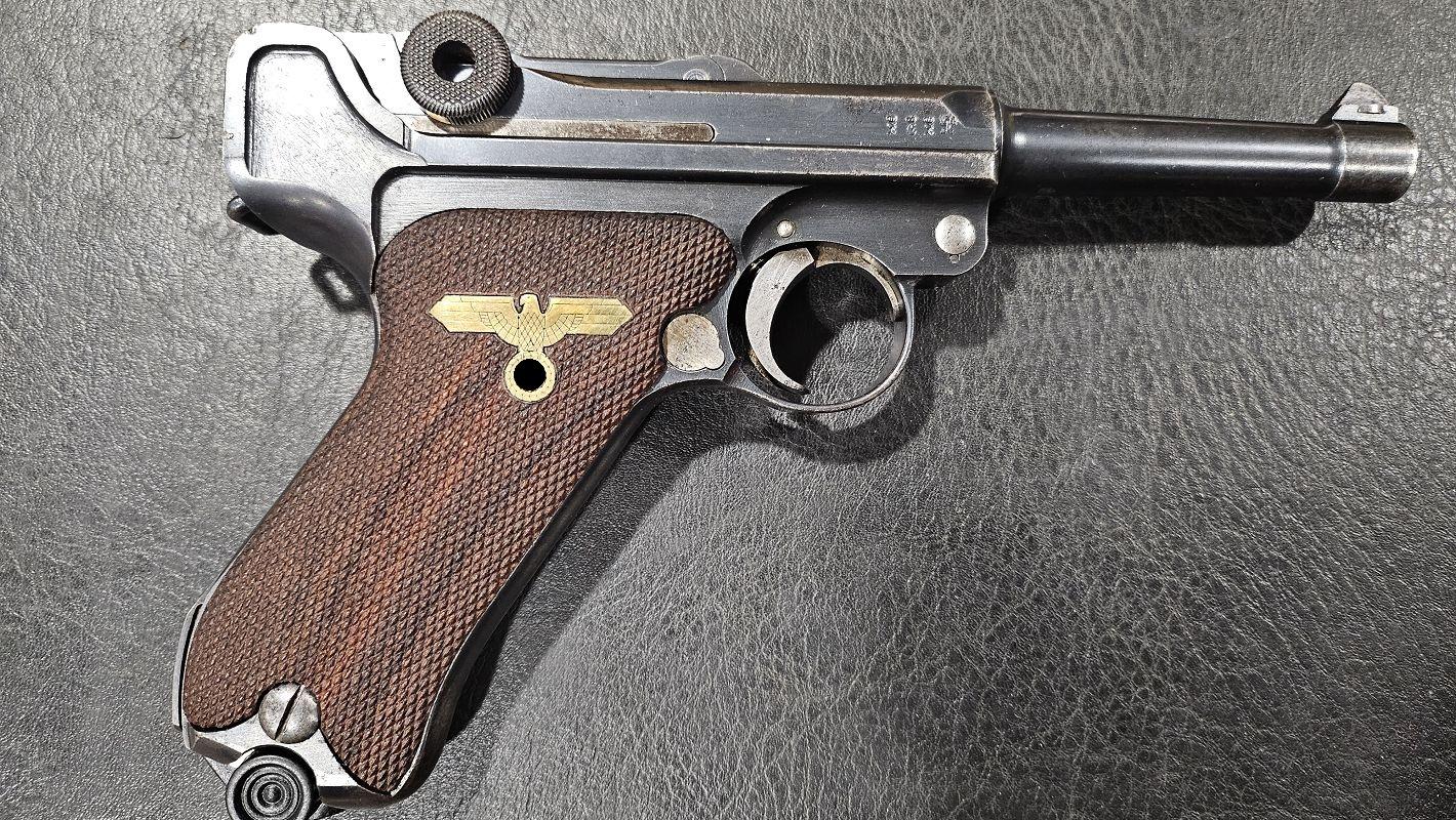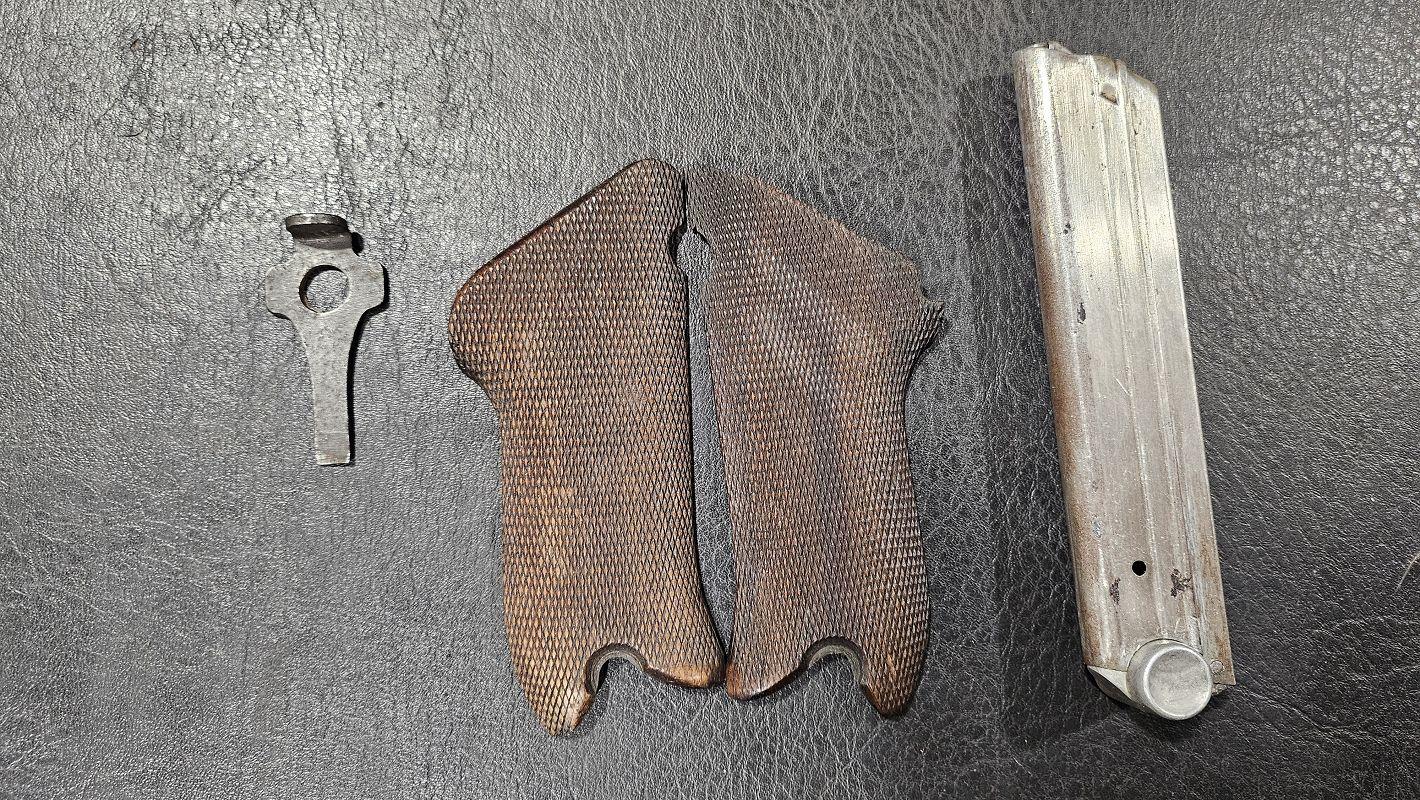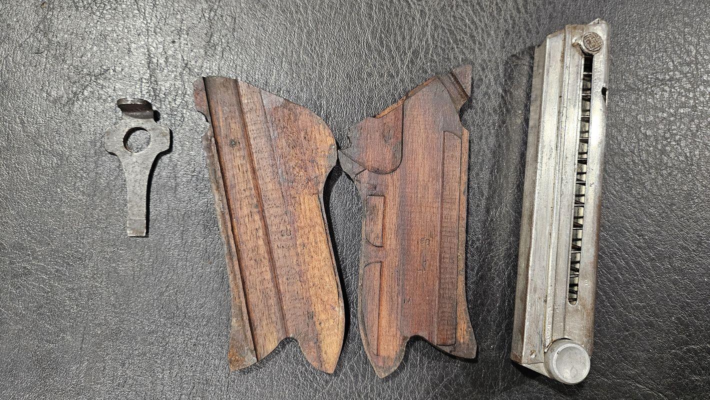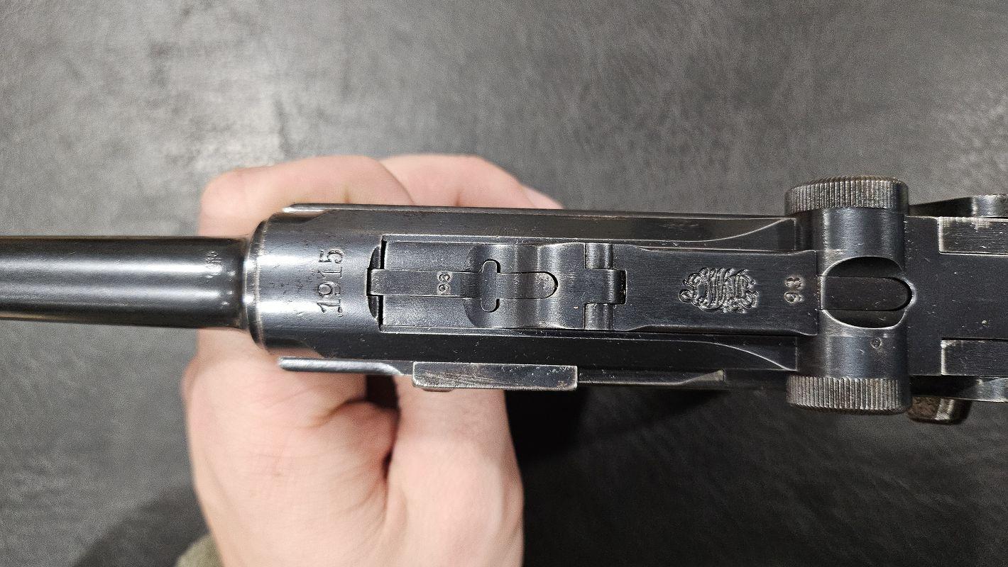 calibre 9x19, mono-matricule sauf chargeurs, plaquettes d'origines fournies, holster de 1915, l'arme date de 1915